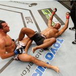 Michael Chiesa and Joe Lauzon put on a spectacular performance at UFC Fight Night 50. Unfortunately the bout was cut short by a cut that Lauzon opened up above Chiesa’s eye with a knee to the head. The doctors stopped the fight, which prompted a frustrated Chiesa to call for a rematch.