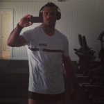 Roy “Big Country” Nelson takes a break from training to watch the “Expendables 3” movie premier.