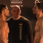 If you missed our live broadcast of today’s UFC Berlin weigh-ins, you missed the main event staredown between top middleweights, Gegard Mousasi and Mark Munoz.