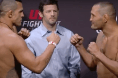 The second bout of the evening featured a bantamweight showdown between Pedro Munhoz (11-2 MMA) and Jimmie Rivera (18-1 MMA). Jimmie Rivera had a three inch reach advantage on Pedro Munhoz and it showed early in round 1. Rivera was able to land punches consistently for the first four minutes of the round before Munhoz began to slowly find his range. Munhoz landed a big knee towards the end of the round but Rivera seemed ok and the bell sounded.