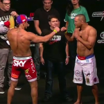 Vitor Belfort and Dan Henderson hit the scales today at the official ‘UFC Fight Night 32: Belfort vs. Henderson’ weigh-ins ceremony and in typical fashion, engaged in a pre-fight staredown. (pictured)