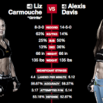 The story of the first round revolved around unchecked leg kicks. Liz Carmouche saw early success with outside leg kicks, but Alexis Davis was answering with inside leg kicks of her own. Neither woman was checking their opponent’s leg kicks, but it seemed as if Carmouche was hobbling in the middle of the round. She started to check the kicks, but abandoned it and tried to counter with punches of her own. Other than a few big punches landed by both women, the leg kicks of Davis is what gave her the round.
