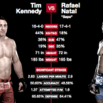 Knockout of the Night: Tim Kennedy Tim Kennedy made the troops in attendance proud tonight with his knockout victory over Rafael Natal. Having served for his country like those in attendance, Kennedy knew that he needed to provide the crowd with something they would remember for years to come. What better way to send the troops walking away than with a knockout victory? Kennedy was taking punishment early on in the first round by eating repeated leg kicks, but he answered with a hook of his own that sent Natal crashing to the mat. Kennedy jumped on his opponent only to be pulled off by the referee, and the crowd went wild.
