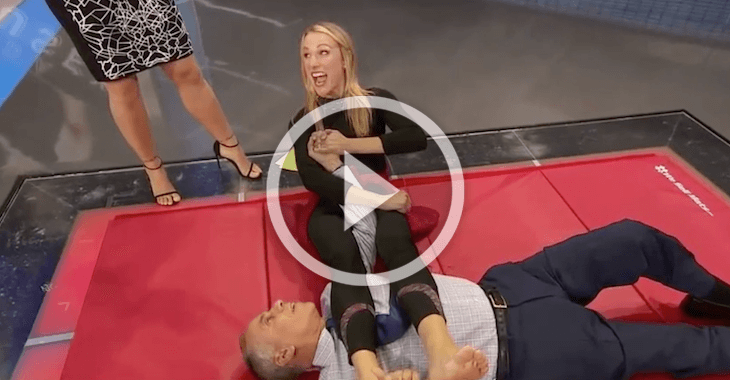Overall it seemed like Rousey did a pretty good job, aside from a few awkward moments, like the one above. Rousey apparently decided not to do a demonstration of her armbar, so instead anchor Lindsay Czarniak took to the mats and attempted to submit poor MLB analyst Tim Kurkjian, who clearly had no idea what was going on. It was pretty funny, but slightly strange.