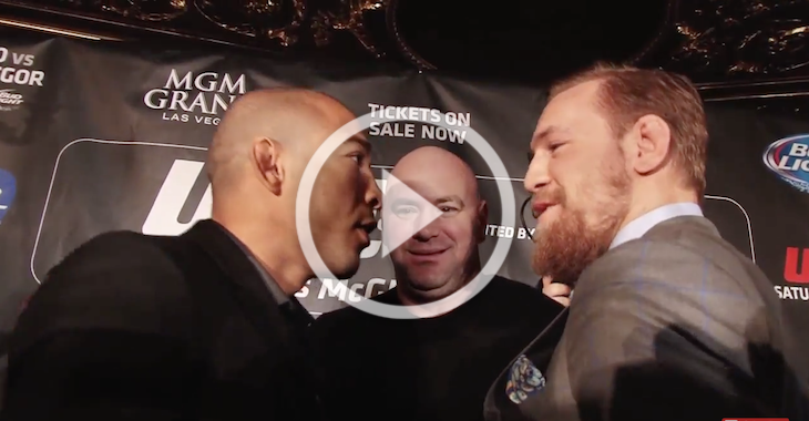 Watch as champion Jose Aldo and challenge Conor McGregor get in each others faces. There’s plenty of banter going on in this clip. Check it out!