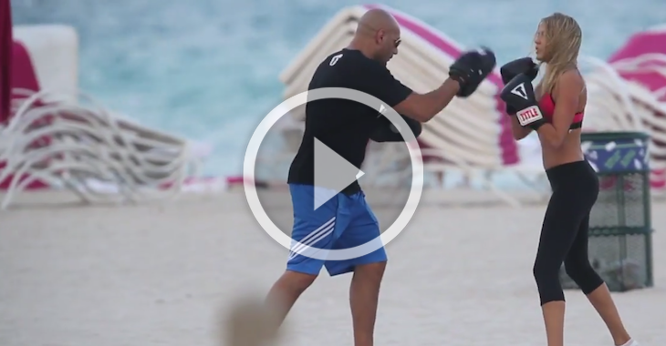 We got video of the very hot Tetyana Veryovkina doing a boxing workout on the beach but the only problem is she’s a really bad boxer!