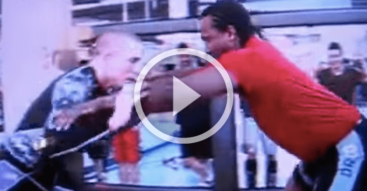 Years ago, St. Pierre locked horns with National Hockey League tough-guy Georges Laraque. It’s no secret that Laraque loves to fight; How else do you think he racked up a 157 penalty minutes in 2001? Check out what happens when one of the UFC’s best grapples with one of the NHL’s toughest in the video above!