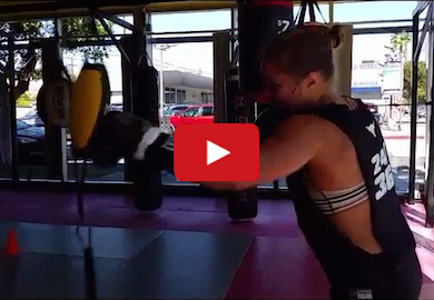 UFC bantamweight champion Ronda Rousey works on her boxing, in slow motion.